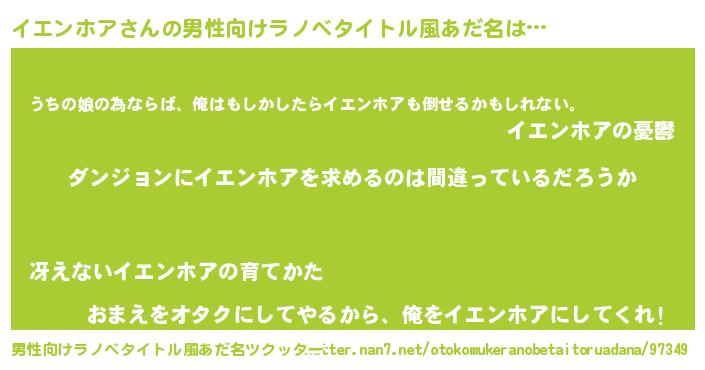 | 女子向けラノベタイトル風あだ名 | 『イエンホアの卵を拾いまして』 |