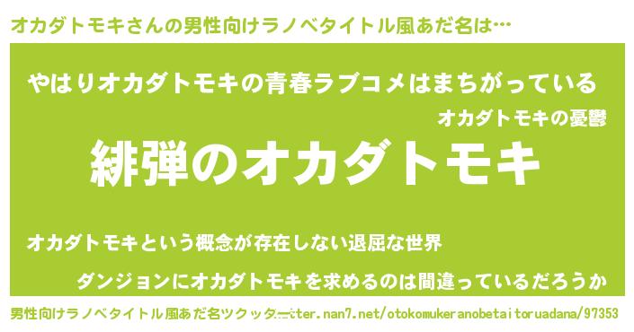 | 欧米人風あだ名 | 『オカダトモキ・ステッグマイヤー』 |