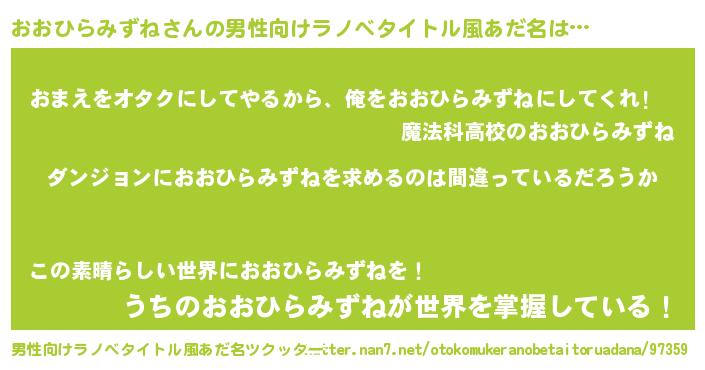 | 胡散臭い通販商品みたいなあだ名 | 『伝統あるサプリメント…その名も「おおひらみずね」』 |