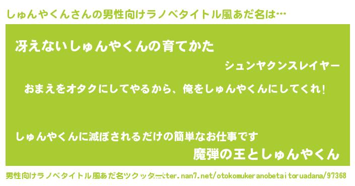 | 女子向けラノベタイトル風あだ名 | 『しゅんやくん夫妻のなれそめ』 |