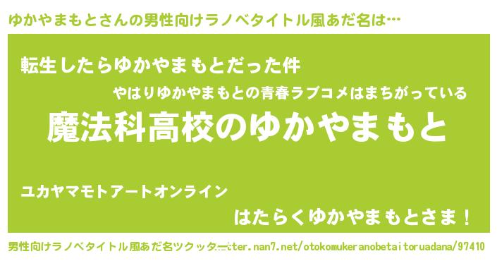 | 女子向けラノベタイトル風あだ名 | 『ゆかやまもとなんてお断りですっ。』 |