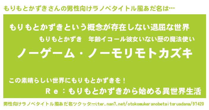 | ヘコむあだ名 | 『もりもとかずき(笑)』『もりぷりん』 |