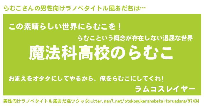 | 女子向けラノベタイトル風あだ名 | 『らむこアンティーク』『らむこ恋絵巻』 |