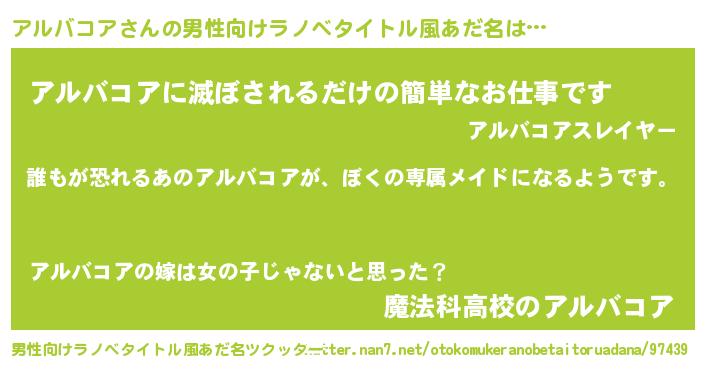 | 女子向けラノベタイトル風あだ名 | 『アルバコアの契約王妃』 |