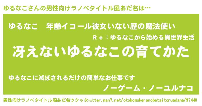 | ヘコむあだ名 | 『ゆるなこ(小並感)』『ゆるっぺ』 |