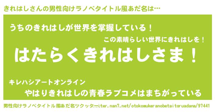 | 意味不明あだ名 | 『きれはしフォーエバー』 |