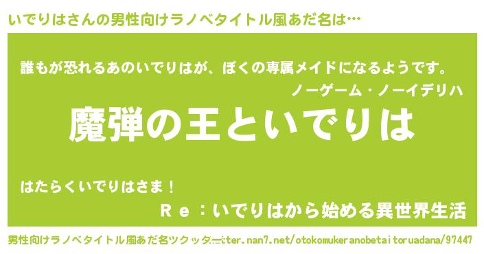 | 意味不明あだ名 | 『住所不定無職いでりは(47歳)』 |