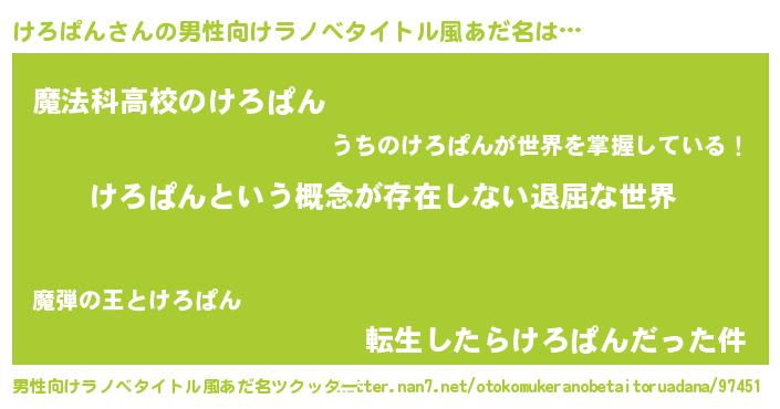 | 意味不明あだ名 | 『永久保存けろぱん』『自称けろぱん』 |