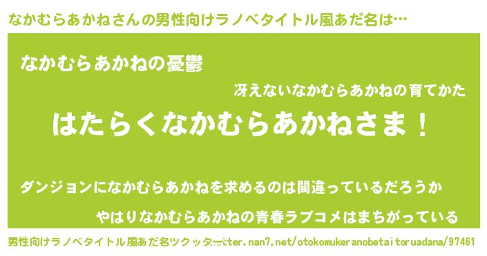 | 肩書あだ名 | 『なかむらあかねプロデューサー』 |