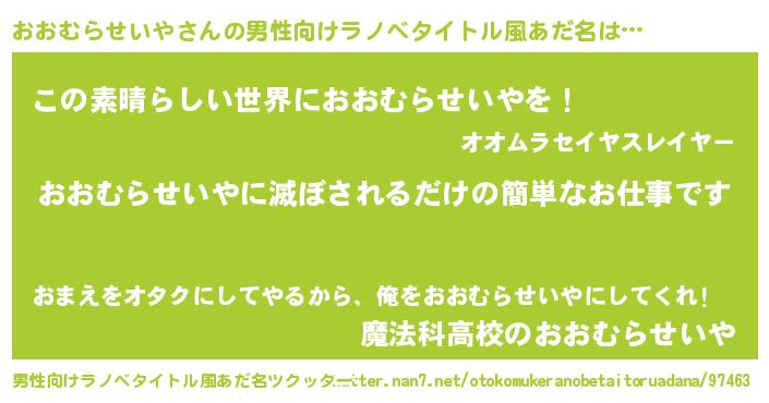 | 意味不明あだ名 | 『住所不定無職おおむらせいや(59歳)』 |