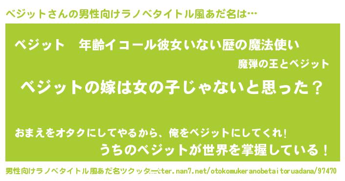 | 意味不明あだ名 | 『とにかく怪しいベジット』 |