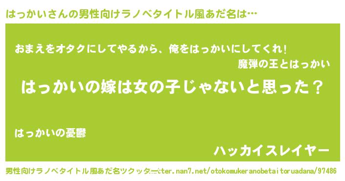 | 女子向けラノベタイトル風あだ名 | 『はっかい様がみてる』 |