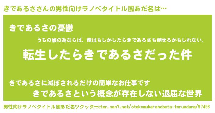 | 胡散臭い通販商品みたいなあだ名 | 『モテモテ間違いなし霊験あらたかなお札…その名も「きであるさ」』 |