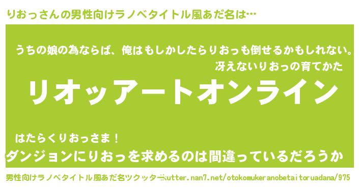| 胡散臭い通販商品みたいなあだ名 | 『億万長者になれる霊験あらたかなお札…その名も「りおっ」』 |