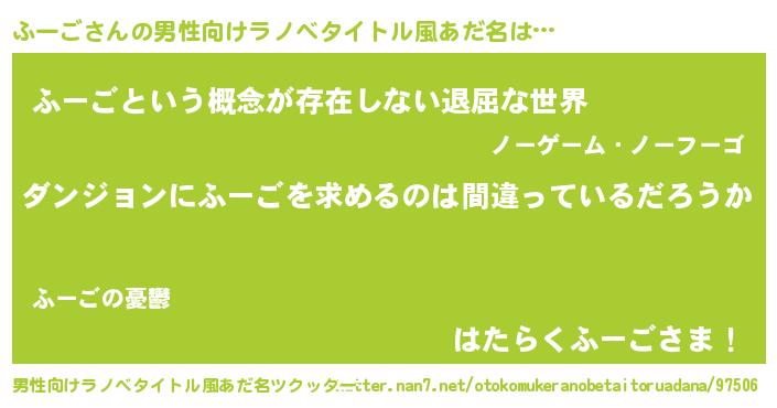 | 女子向けラノベタイトル風あだ名 | 『ふーごは平凡を望む』 |