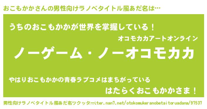 | ヒーロー風カッコイイあだ名 | 『慈愛の使者おこもかか』『仮面オコダー』 |