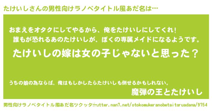 | 女子向けラノベタイトル風あだ名 | 『たけいしの卵を拾いまして』 |