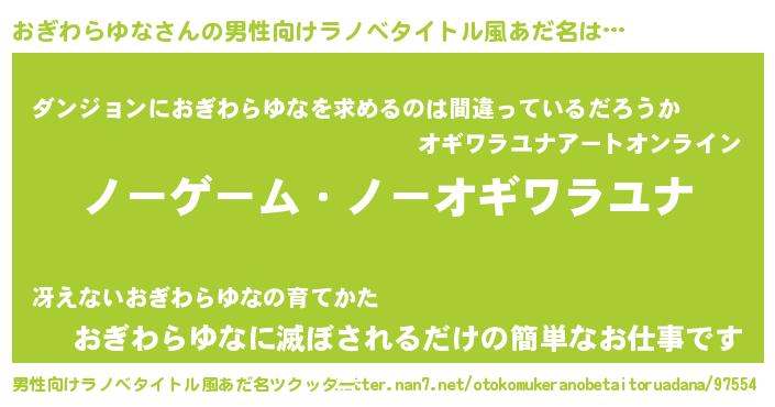| 女子向けラノベタイトル風あだ名 | 『死神おぎわらゆなの再婚』 |
