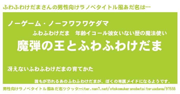 | ヒーロー風カッコイイあだ名 | 『仮面フワダー』『ネオフワフワケダマ』 |