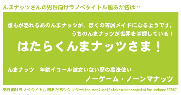 | ヘコむあだ名 | 『んまナッツ(遠い目)』『んまにー』 |