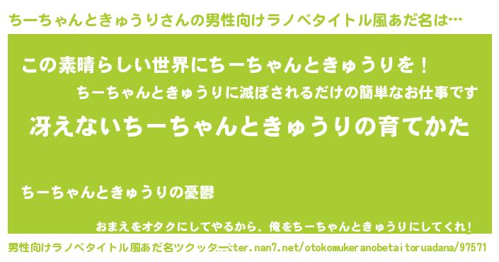 | 女子向けラノベタイトル風あだ名 | 『シンデレラちーちゃんときゅうり家の靴箱館』 |