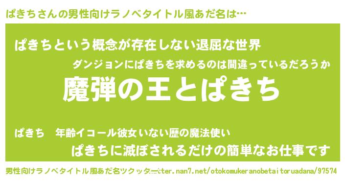 | 意味不明あだ名 | 『住所不定無職ぱきち(93歳)』 |