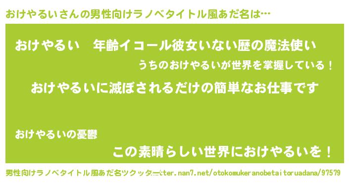 | 胡散臭い通販商品みたいなあだ名 | 『あなたにだけ特別に提供する世界で10本だけ現存している希少なブランデー…その名も「おけやるい」』 |