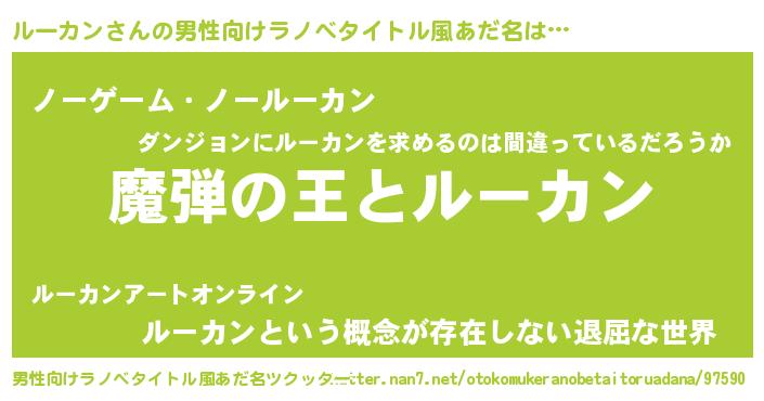 | 意味不明あだ名 | 『住所不定無職ルーカン(2歳)』 |