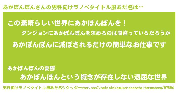 | 意味不明あだ名 | 『住所不定無職あかぽんぽん(8歳)』 |