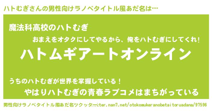 | 意味不明あだ名 | 『ペロリンハトむぎ』『自称ハトむぎ』 |