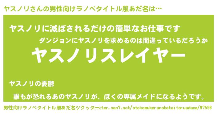 | 胡散臭い通販商品みたいなあだ名 | 『絶対に幸福をもたらす健康食品…その名も「ヤスノリ」』 |