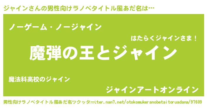| 女子向けラノベタイトル風あだ名 | 『ジャインが死なない童話 林檎のジャインの診療簿』 |