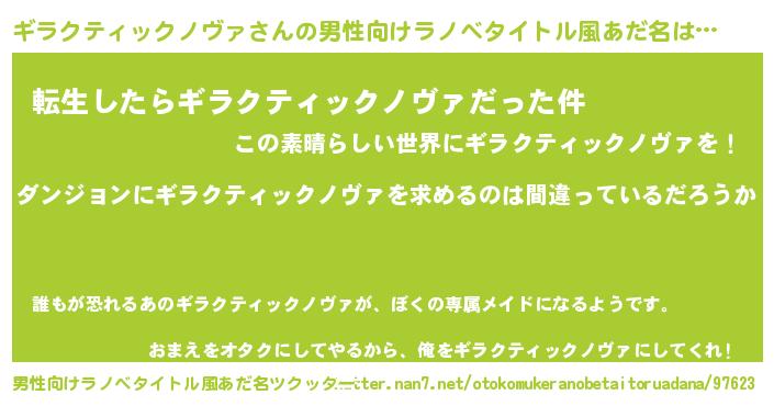 | 女子向けラノベタイトル風あだ名 | 『ギラクティックノヴァは平凡を望む』 |