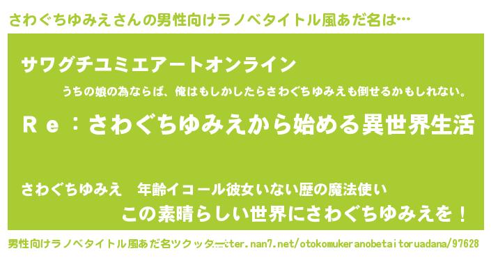 | 女子向けラノベタイトル風あだ名 | 『さわぐちゆみえストレイドッグス』 |
