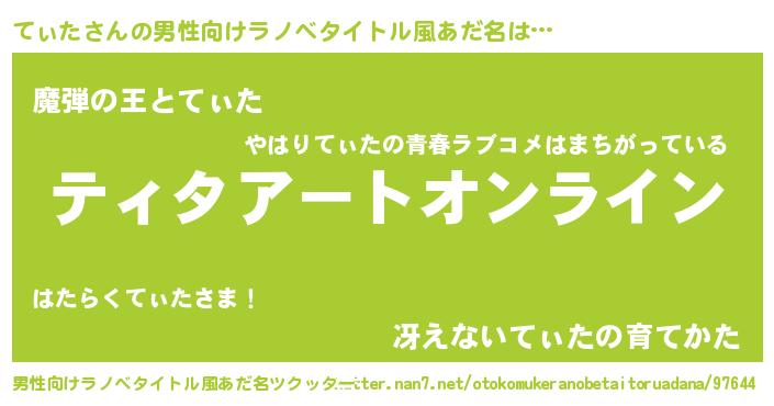 | 女子向けラノベタイトル風あだ名 | 『てぃた姫と円卓の騎士』 |
