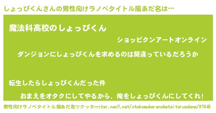 | 女子向けラノベタイトル風あだ名 | 『しょっぴくんの卵を拾いまして』 |