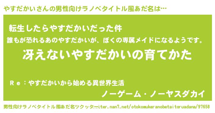 | 女子向けラノベタイトル風あだ名 | 『男装やすだかいの憂鬱な任務』 |