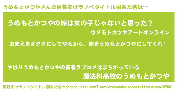 うめもとかつやさんの男性向けラノベタイトル風あだ名をツクッター!