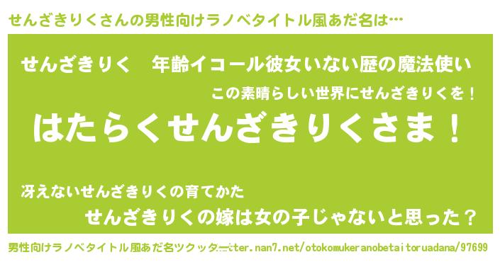| 胡散臭い通販商品みたいなあだ名 | 『信頼と実績のサプリメント…その名も「せんざきりく」』 |