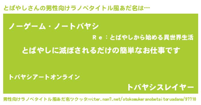 | ヘコむあだ名 | 『とばにー』『牛乳』『とばっちょ』 |
