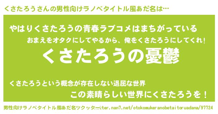 | 女子向けラノベタイトル風あだ名 | 『(仮)くさたろうのやんごとなき事情』 |