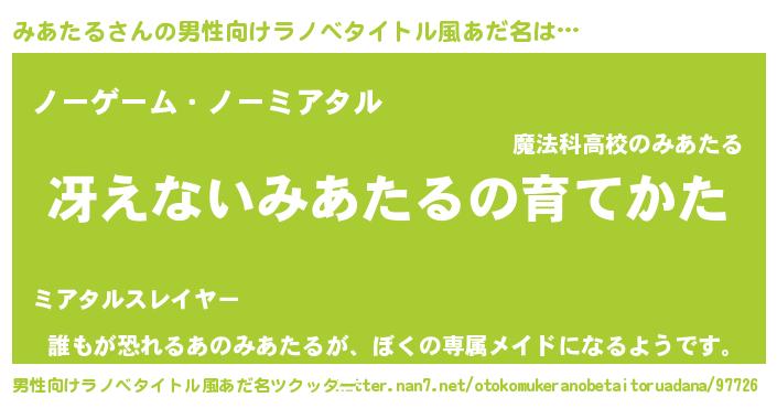 みあたるさんの男性向けラノベタイトル風あだ名をツクッター!