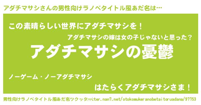 アダチマサシさんの男性向けラノベタイトル風あだ名をツクッター!