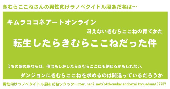 | 女子向けラノベタイトル風あだ名 | 『きむらここねの玉の輿計画!』 |