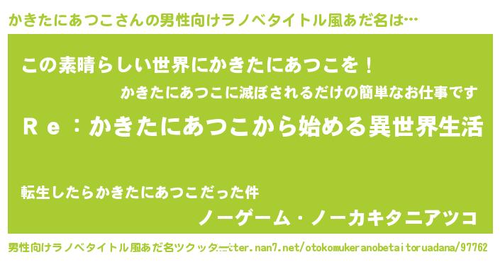 | 女子向けラノベタイトル風あだ名 | 『かきたにあつこストレイドッグス』 |