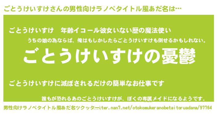 | 女子向けラノベタイトル風あだ名 | 『(仮)ごとうけいすけのやんごとなき事情』 |
