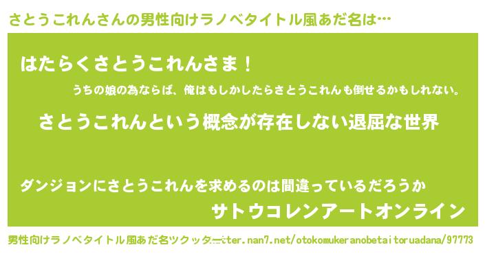 さとうこれんさんの男性向けラノベタイトル風あだ名をツクッター!