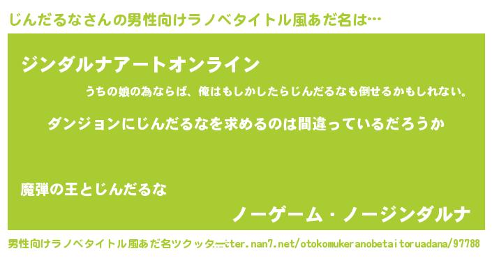 | 女子向けラノベタイトル風あだ名 | 『じんだるなは平凡を望む』 |