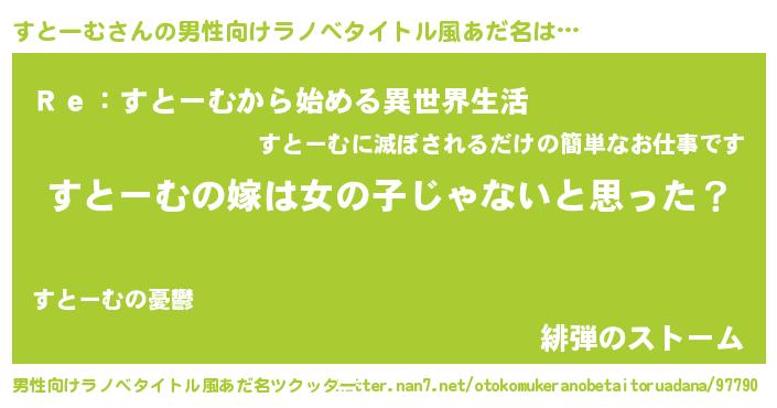| 女子向けラノベタイトル風あだ名 | 『すとーむ様がみてる』 |