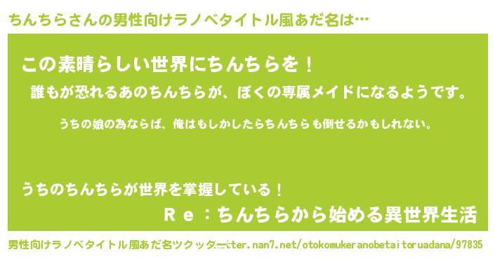 | ヒーロー風カッコイイあだ名 | 『ウルトラちんちらマン』『仮面チンダー』 |